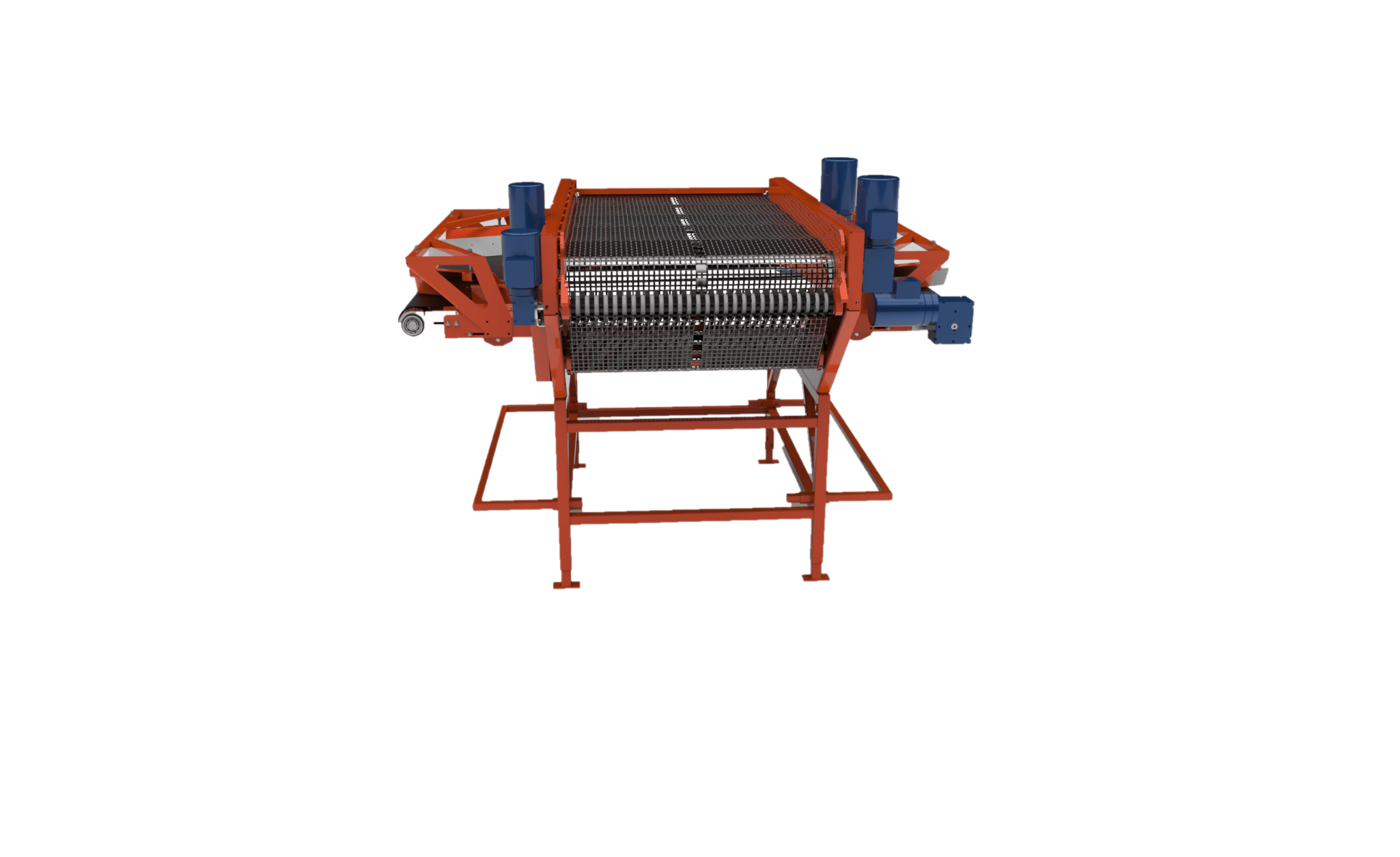 En risteaksel er montert under nettkjede for å skape vibrasjon av produktene og nettkjede som sikrer en effektiv og skånsom sortering av produktene.
